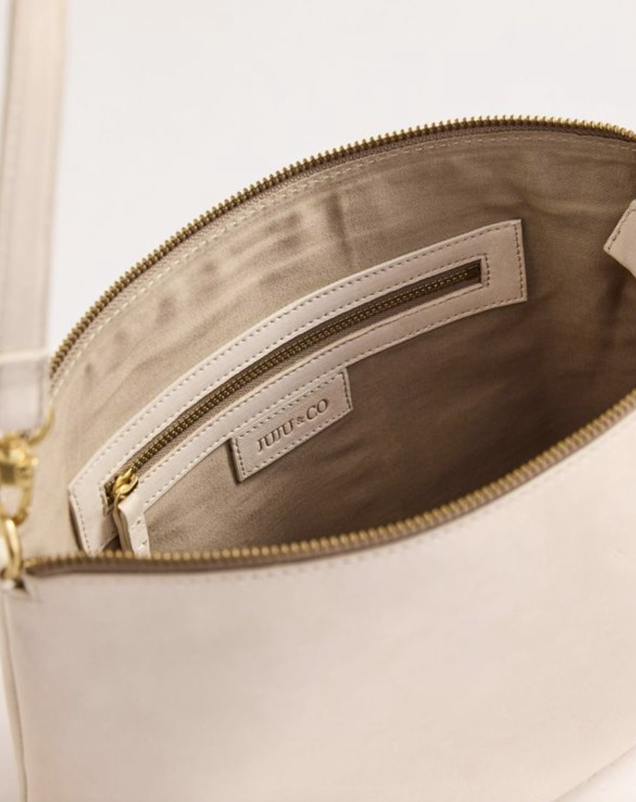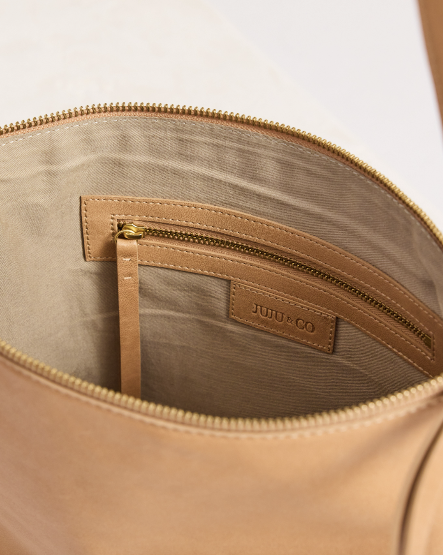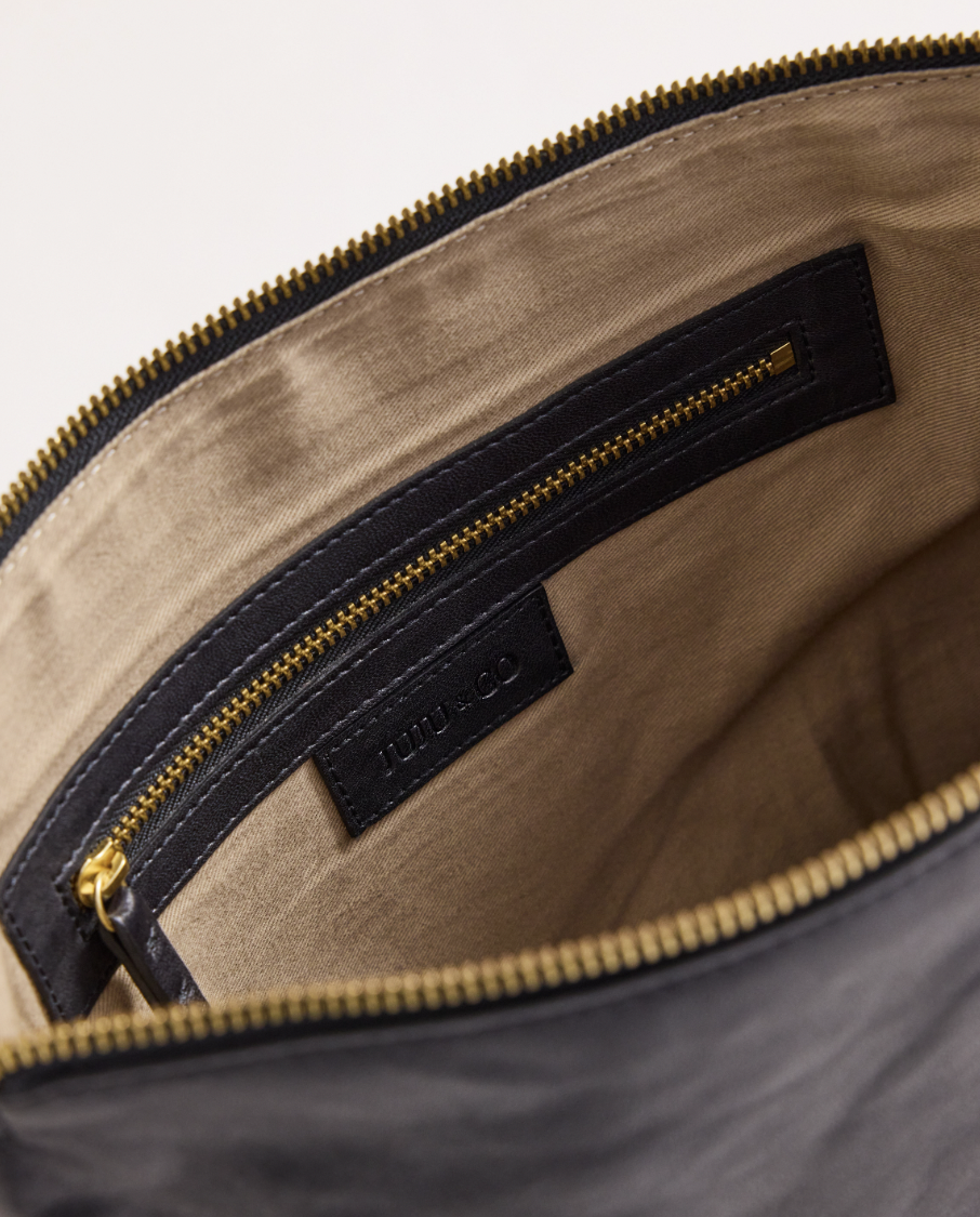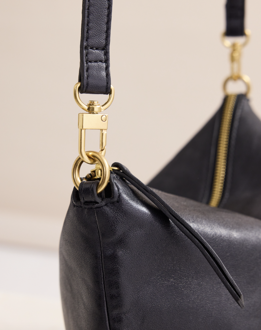 Augusta is a wonderful soft leather good size everyday bag with a removalable strap to turn her onto an evening pouch. W27cm L21cm D8cm, lamb leather, adjustable and removable leather crossbody strap, zipper closure, one internal zip pocket, cotton lining.