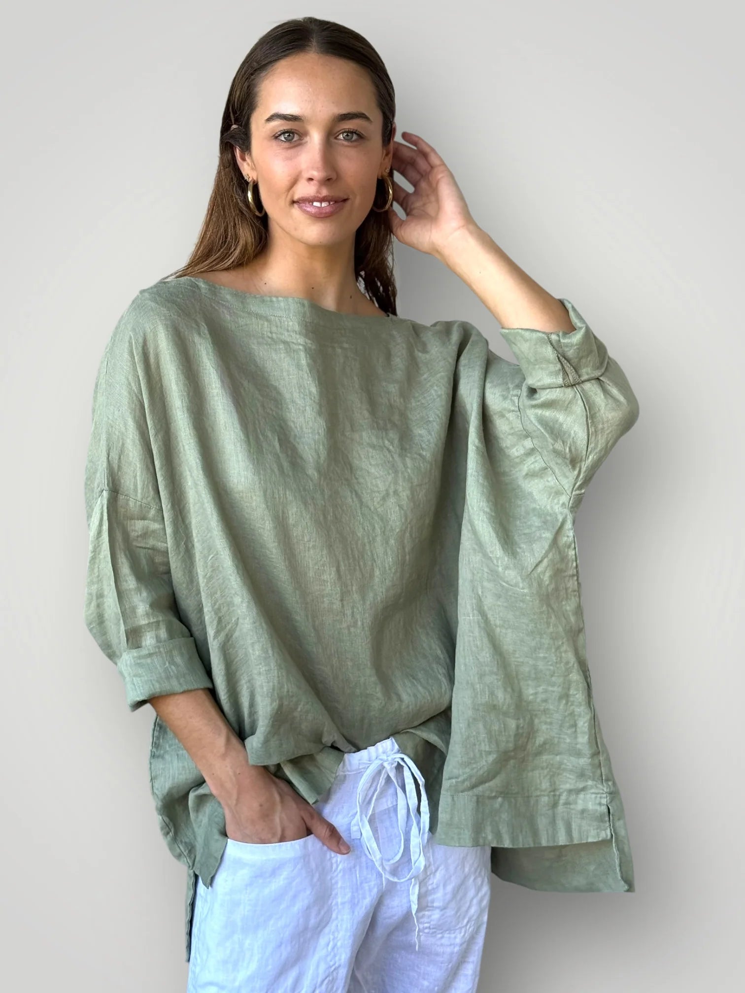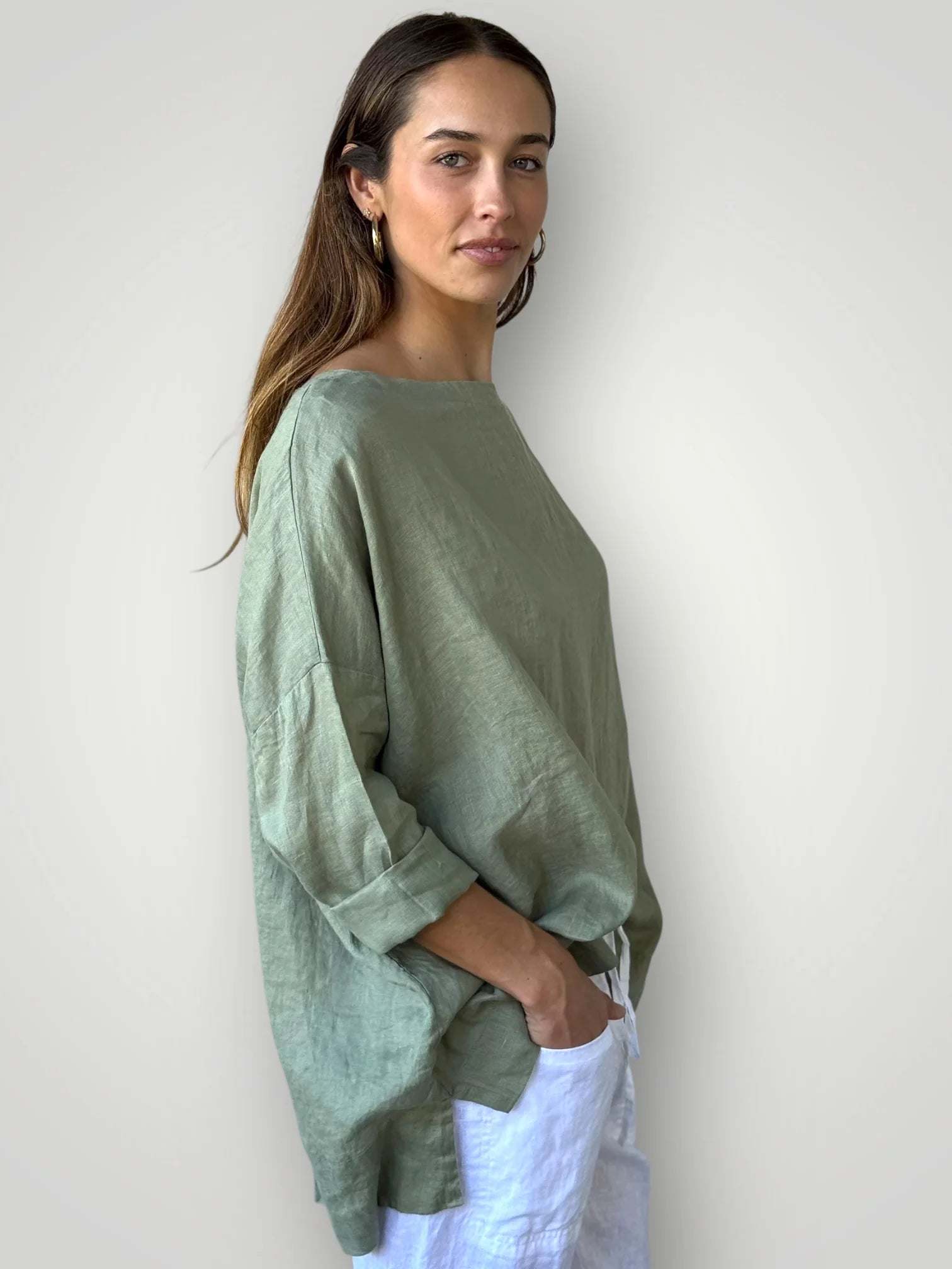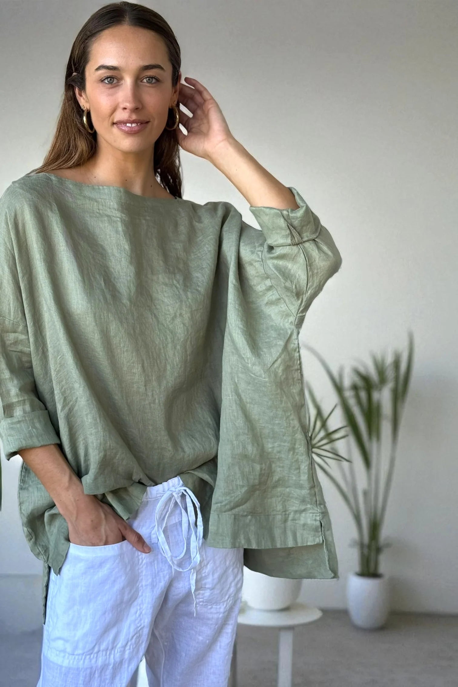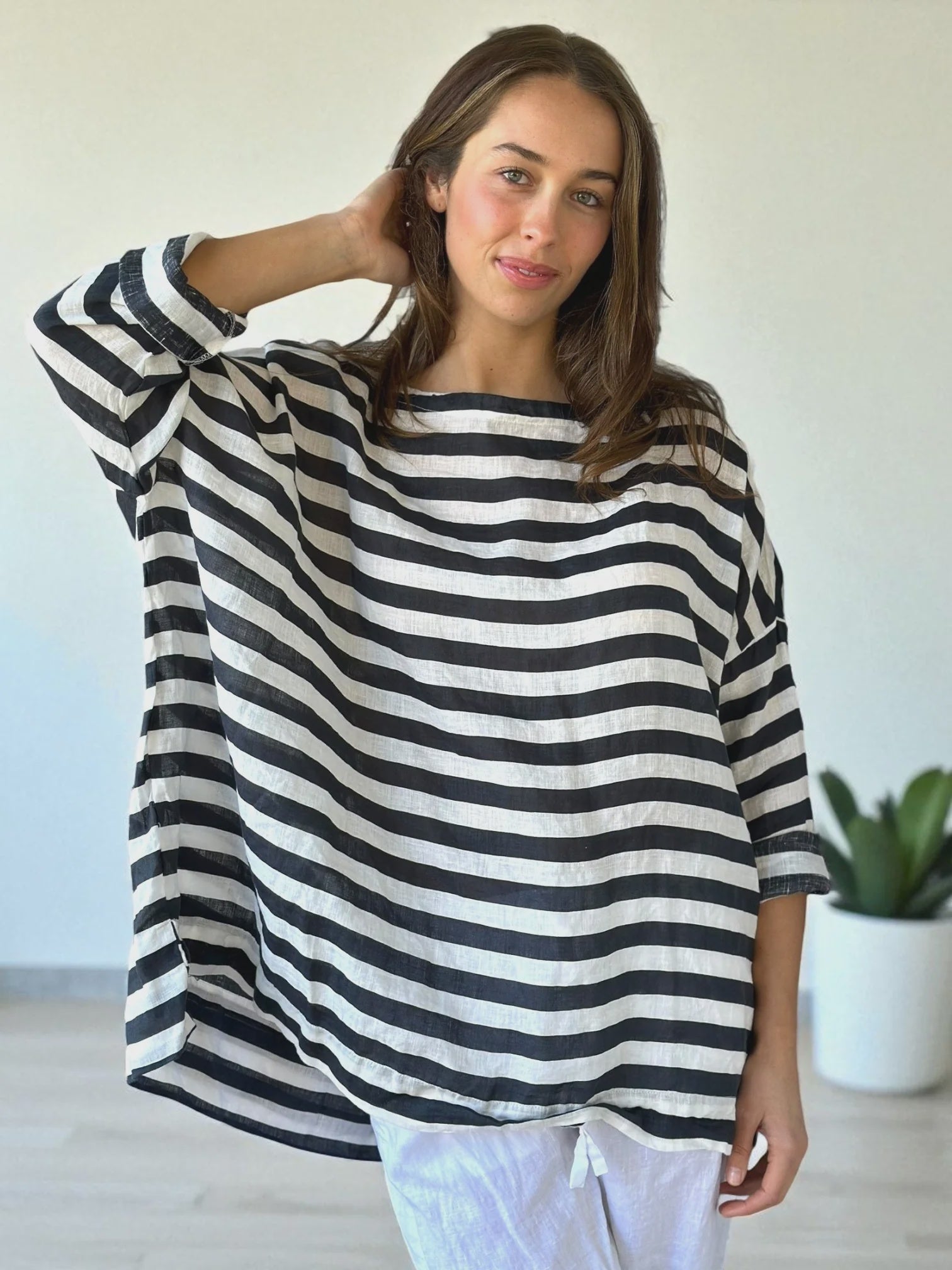 Our very fabulous Avril top in indigo and white stripe. Also available in sage.