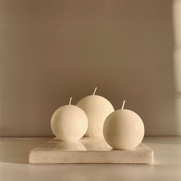 Part of our Full Moon collection, this compact Sphere Candle features a dramatic lunar surface texture and glows like a full moon when lit.