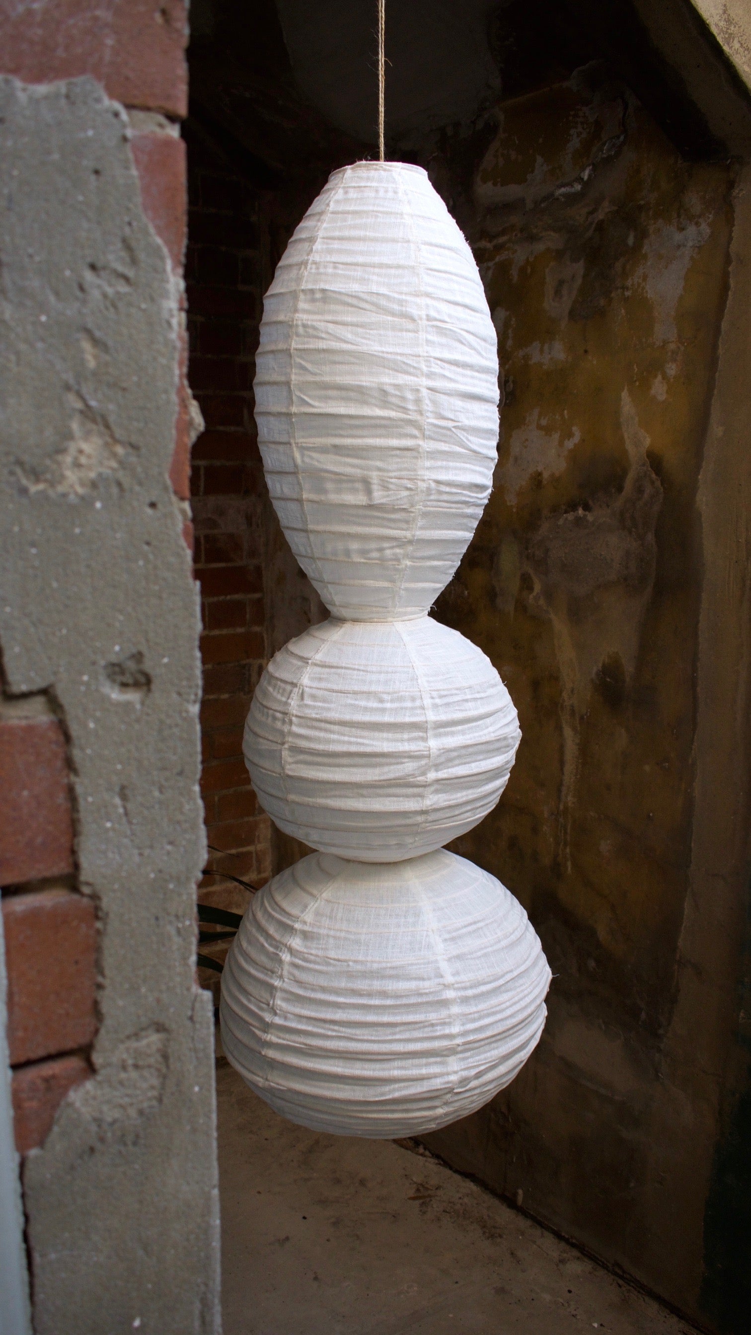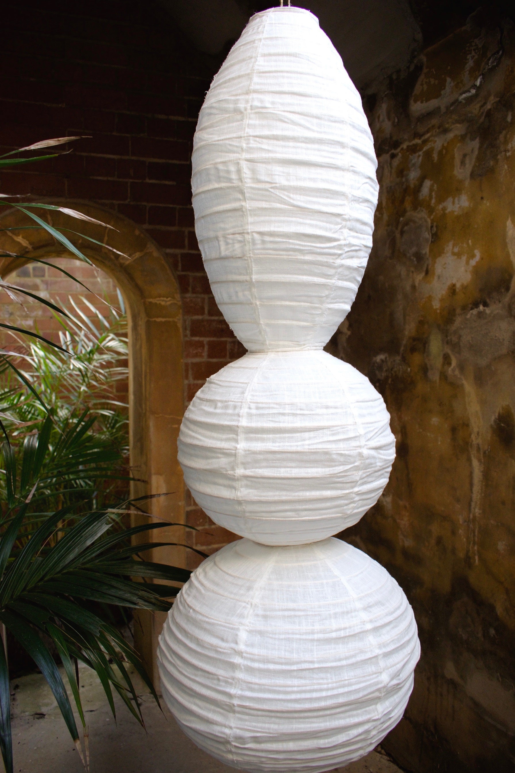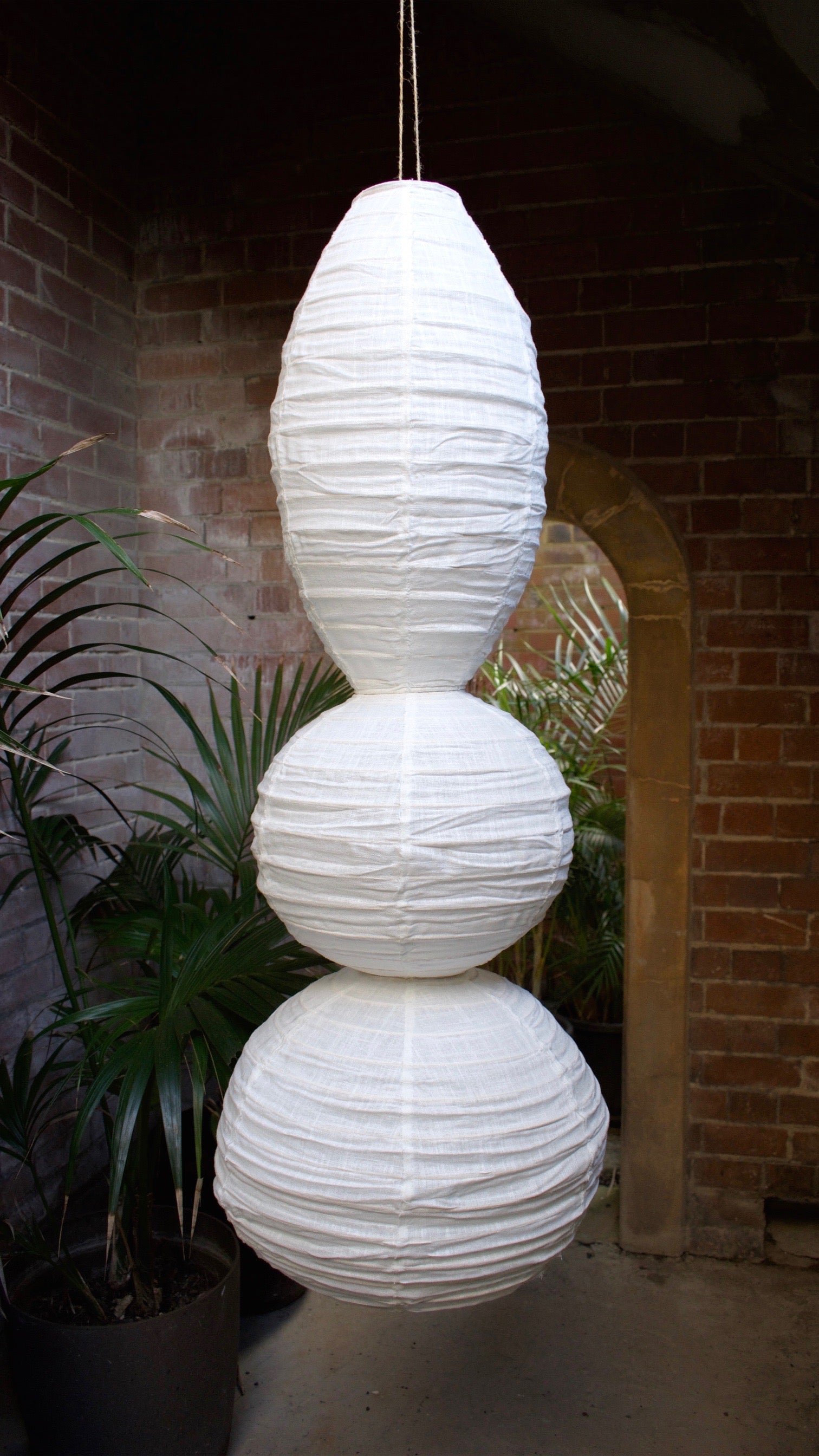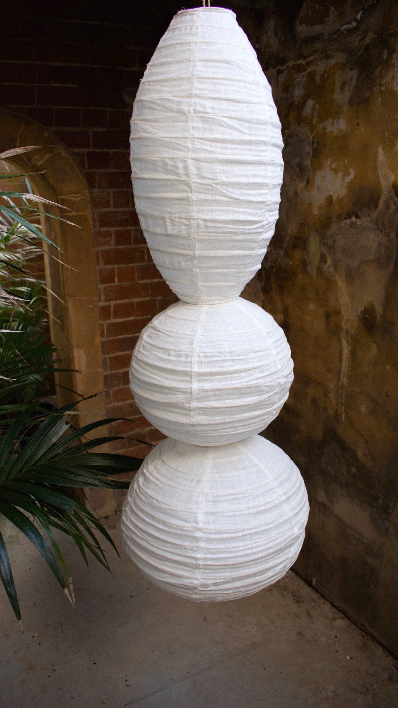 Ethereal floating linen pendant light where we have joined our 3 favourite shapes to a beautiful statement piece for your home to feature!