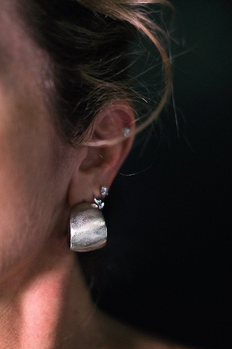 These Chunky Sterling Silver Hoops are pleasure to wear. With a solid form, they sit snug against the ear upon a studded post. As they are individually hand made, there is evidence of handwork on each piece….making them that little bit more special.