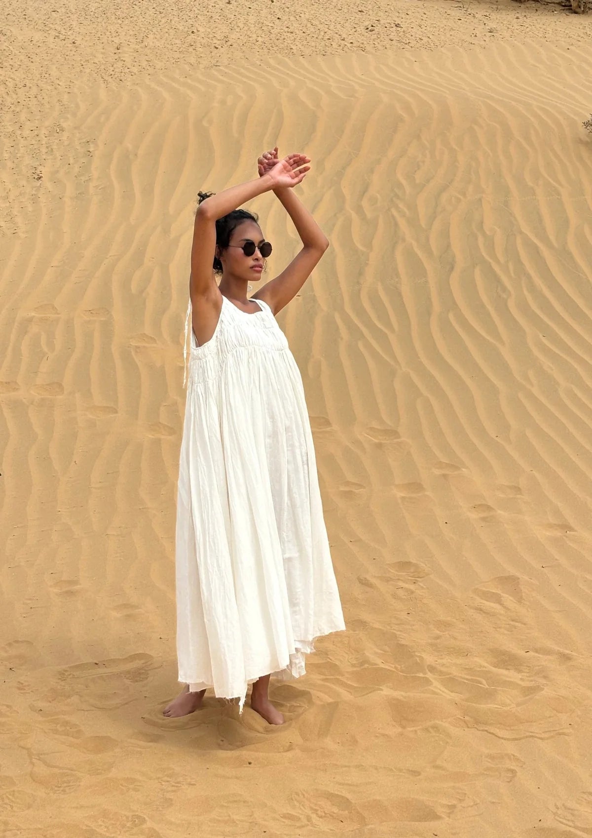Our Corina dress is made from a soft cotton silk blend and lined with cotton silk.