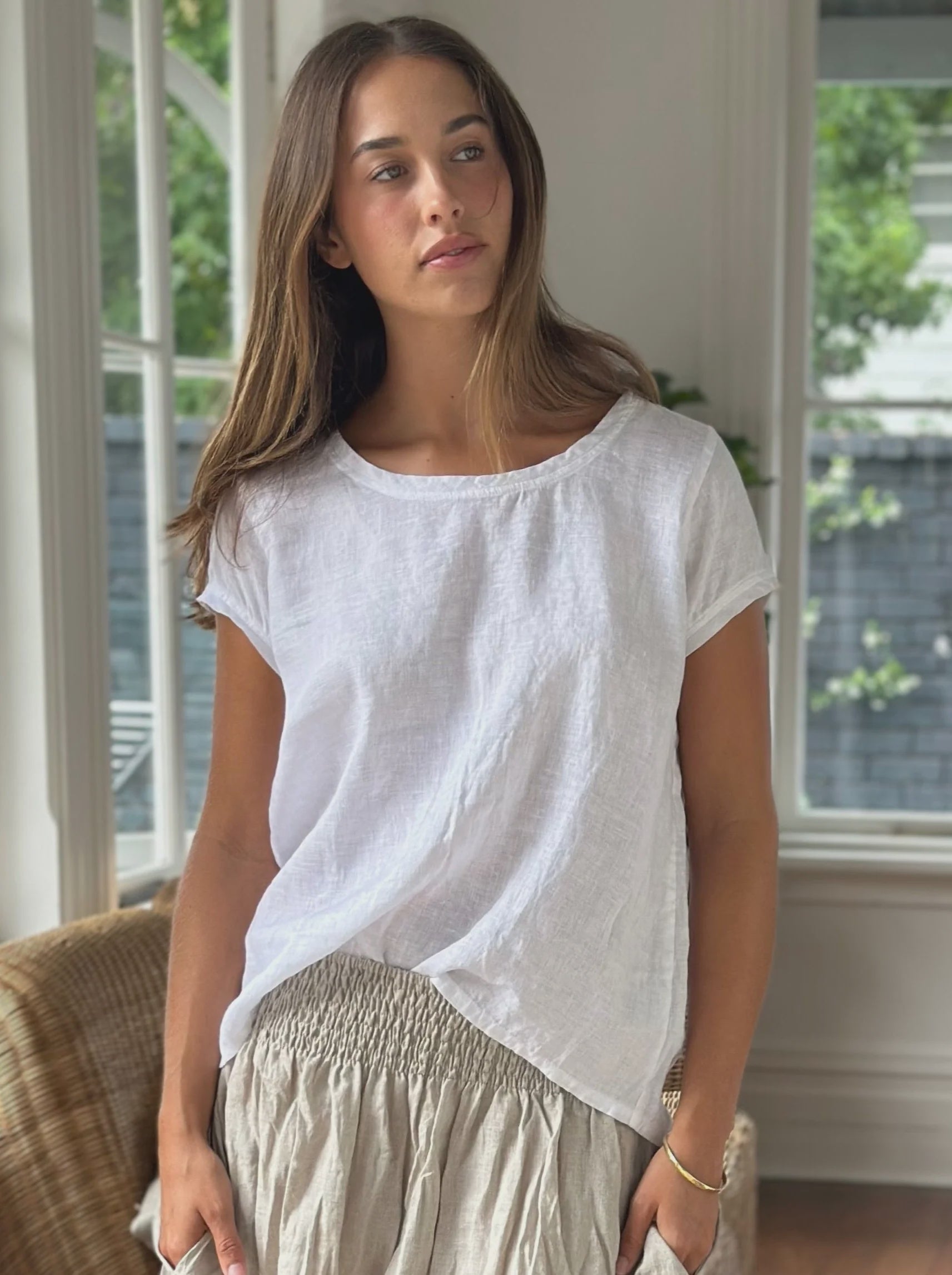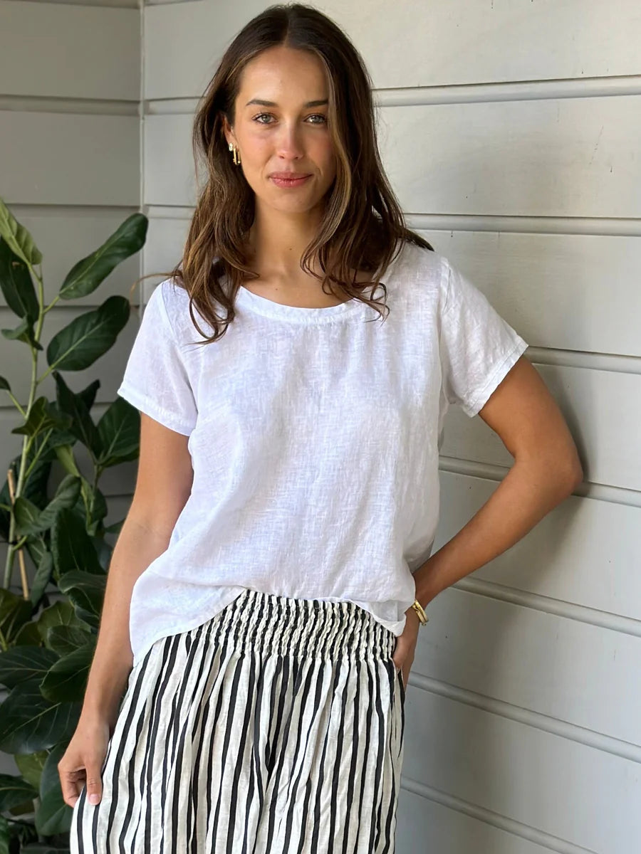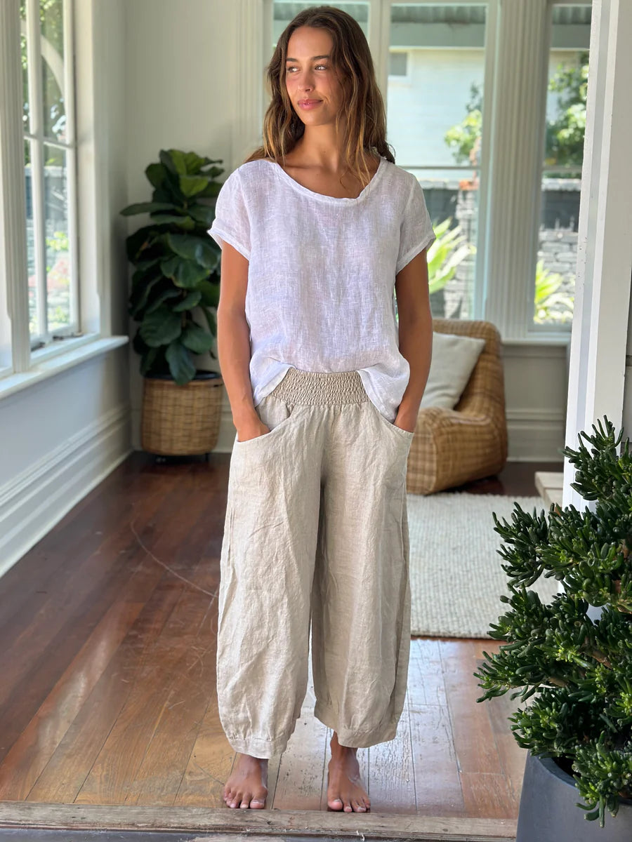 A truly timeless style that works so well with skirts, pants, and shorts, lovely and cool in breathable linen, a great staple for your wardrobe