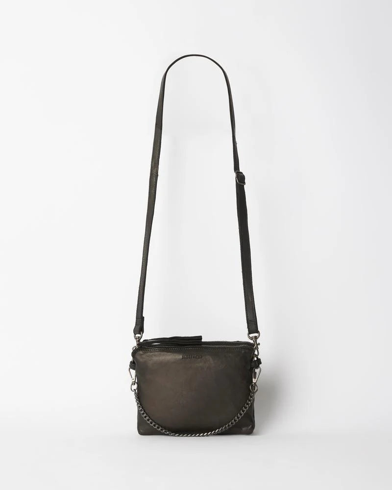 With a detachable chain and adjustable leather shoulder strap, our Good Juju Bag is perfect for both the day and the evening. It is double-bodied for extra space and features an internal pocket and three card slots. Either wear as a shoulder bag, or as a clutch by removing the long strap and clipping both ends of the chain to one ring to form a wrist strap.
