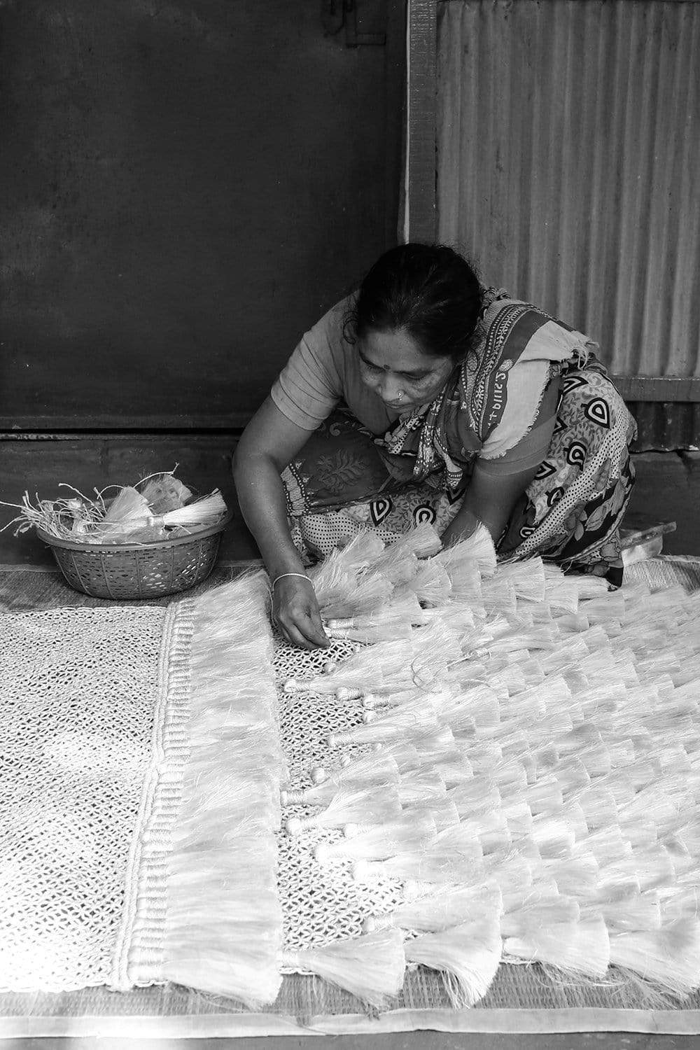 - Dark flecks may appear in some of the tassels. This is the outer husk of the jute plant that is generally removed through the retting process however may occasionally appear in the final product.