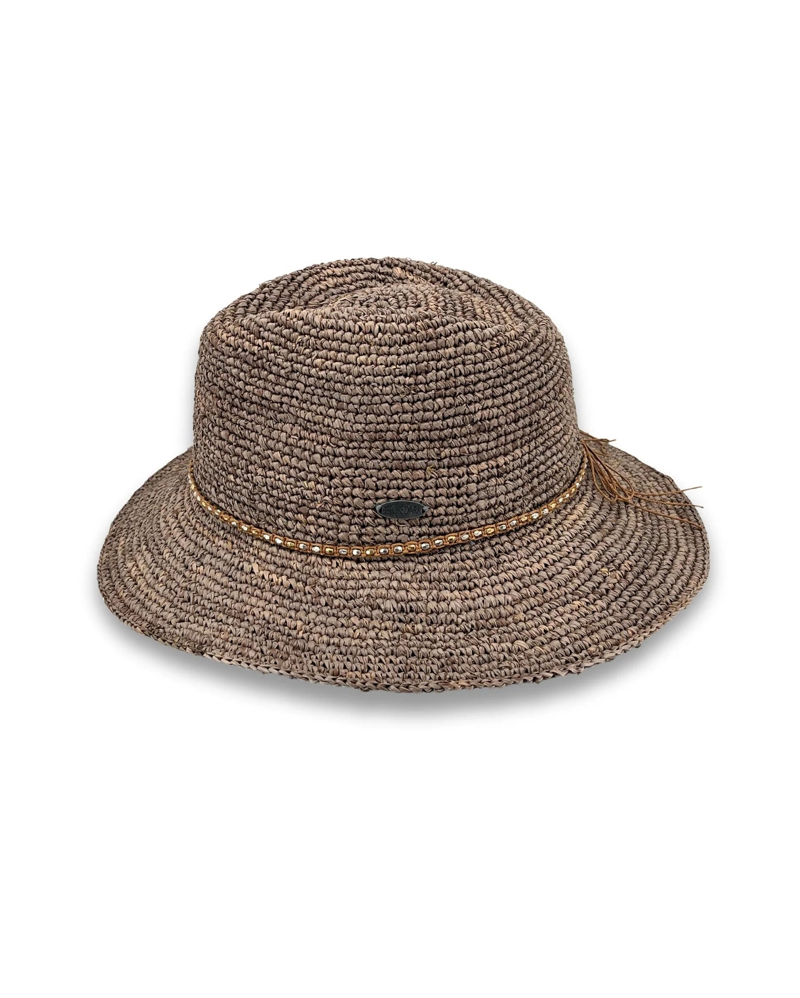 One of our favourites, the Magdalena hand crochet Raffia Fedora offers sophisticated style at an affordable price. The crocheted Madagascan raffia features a tear drop crown, unlined interior and an adjustable inner drawstring allowing for a perfect fit for superior all day comfort in warm weather. The crown is trimmed with a stylish metallic beaded trim to compliment the mushroom tone in the Magdalena.