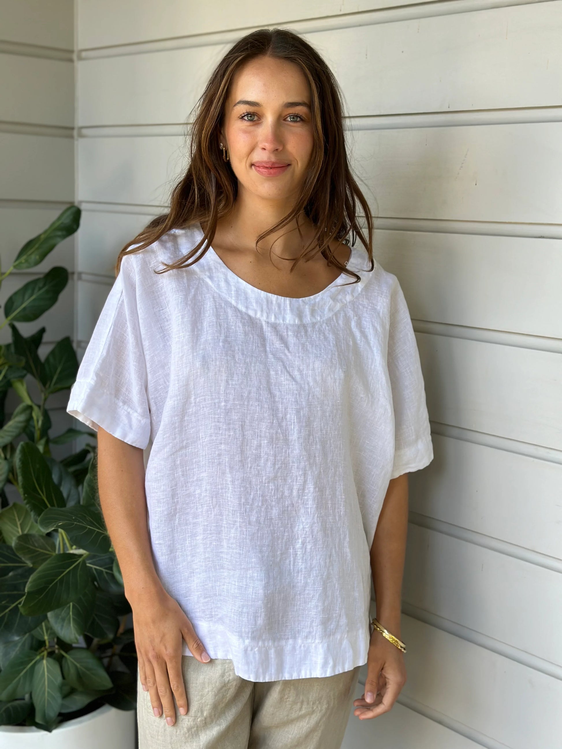 The Mia Top is one of those effortlessly versatile pieces you’ll find yourself reaching for again and again. With a relaxed, easy-to-wear silhouette and flattering rounded hem, it looks equally good worn loose or gently tucked in.