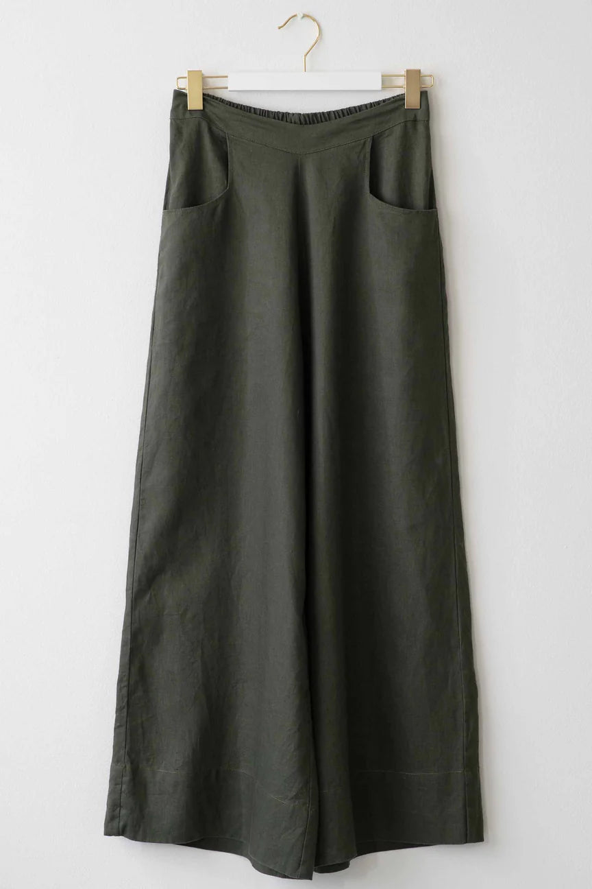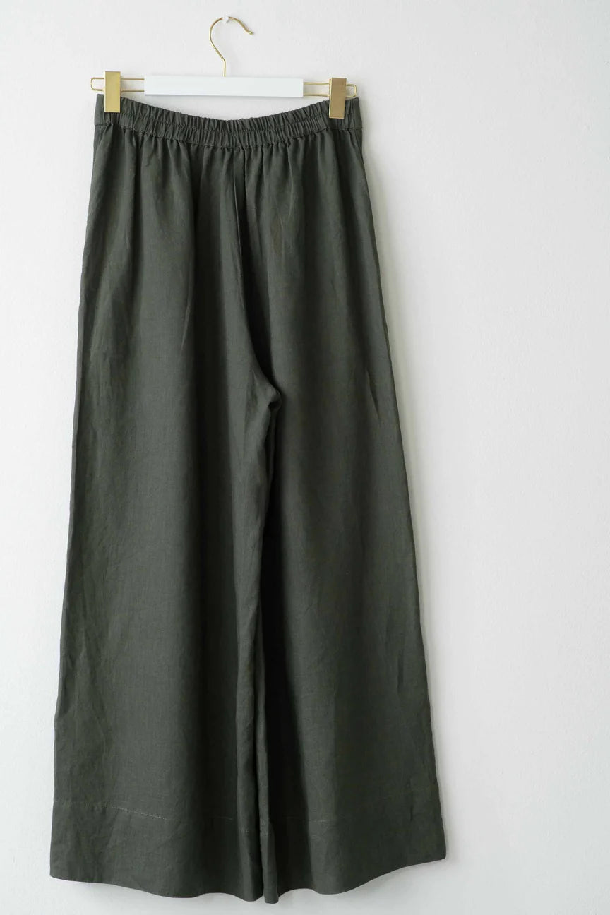 Wide leg pants with a flat front and front pockets.