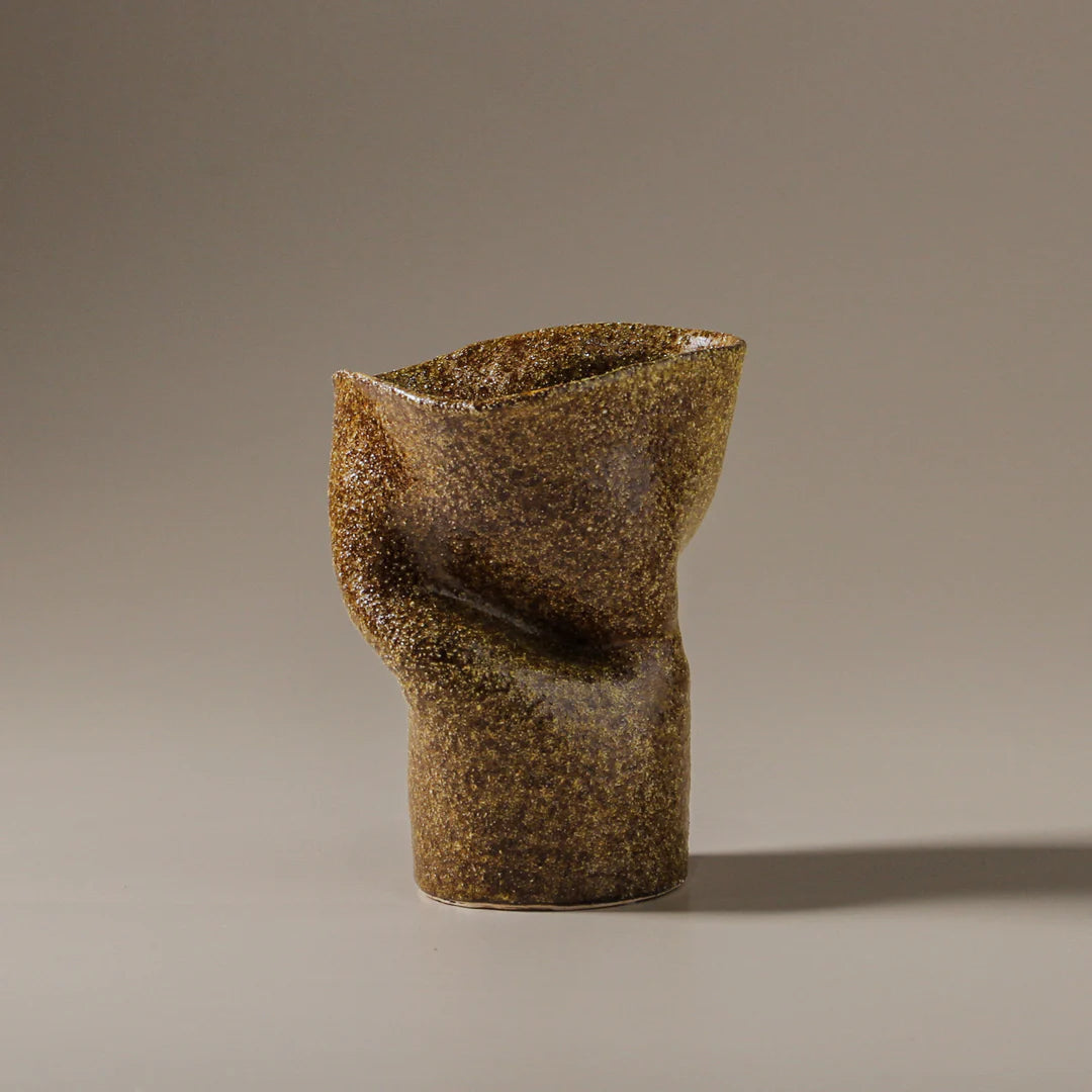 With its slightly twisted silhouette and earthy tones, the Ravine Vase is an organic addition to your floral arrangement. Available in two sizes, its design features a narrower base that expands into a wider opening, creating a dynamic flow of form that feels both grounded and fluid.