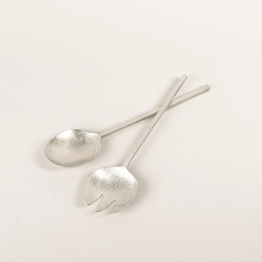 Handmade antique brass, silver and burnished mini salad servers.