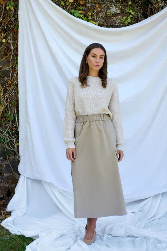 Knitted in our core yarn—and for good reason. Since 2019, it has stood out for its durability and exceptional performance. A semi-worsted yarn with high resistance to pilling, it's what we call the "sweater yarn," perfect for transeasonal dressing and ideal for warmer climates. Its versatility and longevity make it a true staple in our knitwear collections.