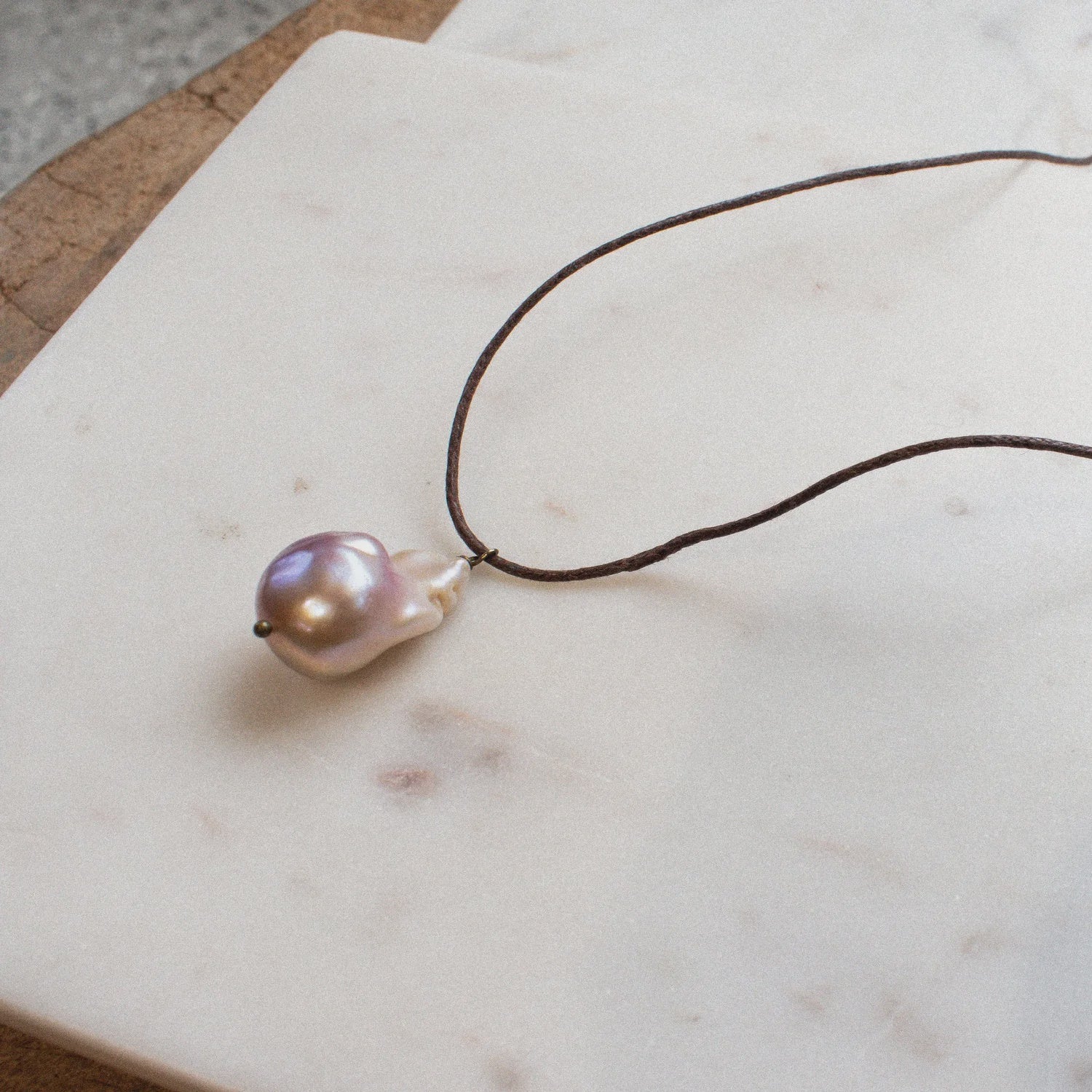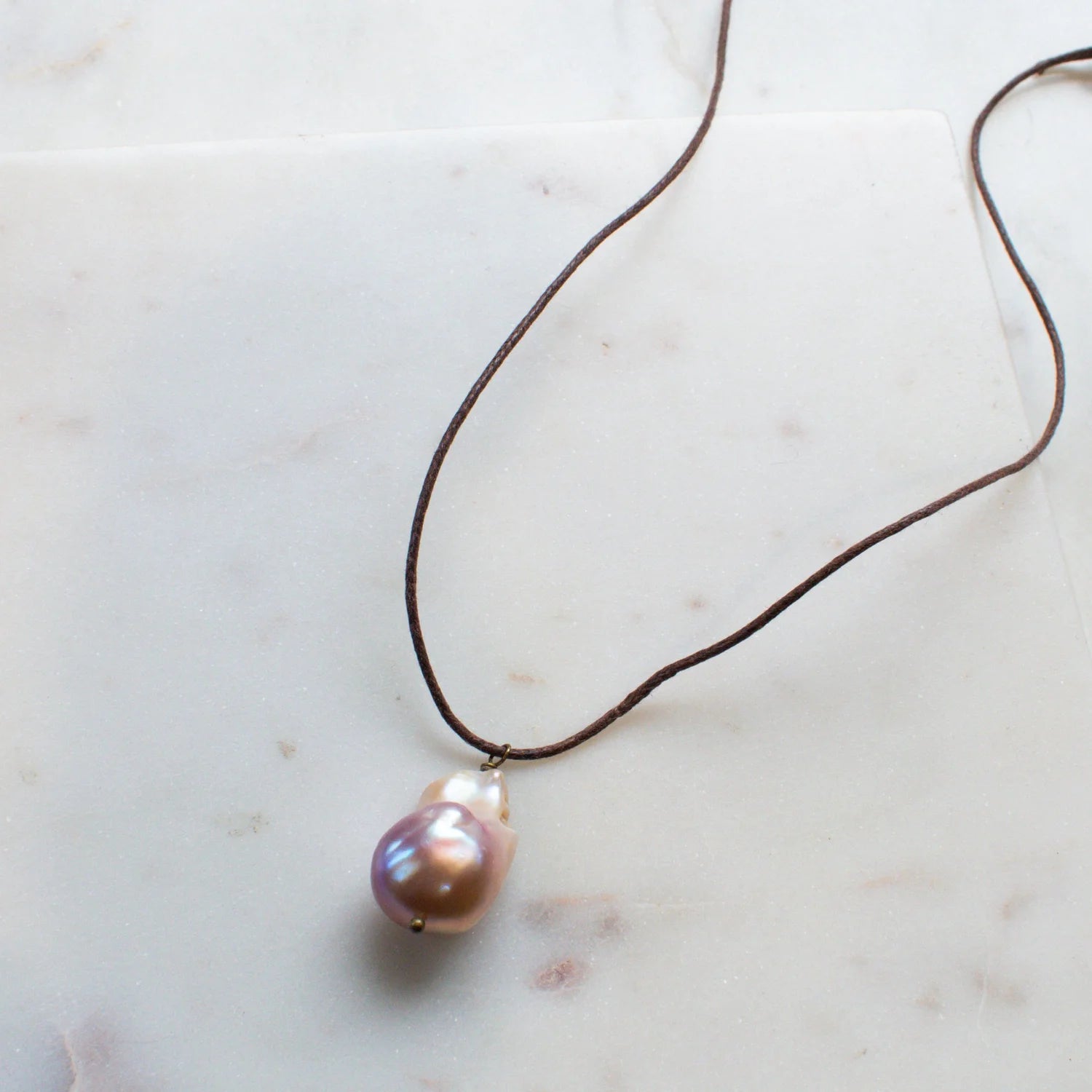 The AURELIA Baroque Pearl Necklace on Brown Cord
