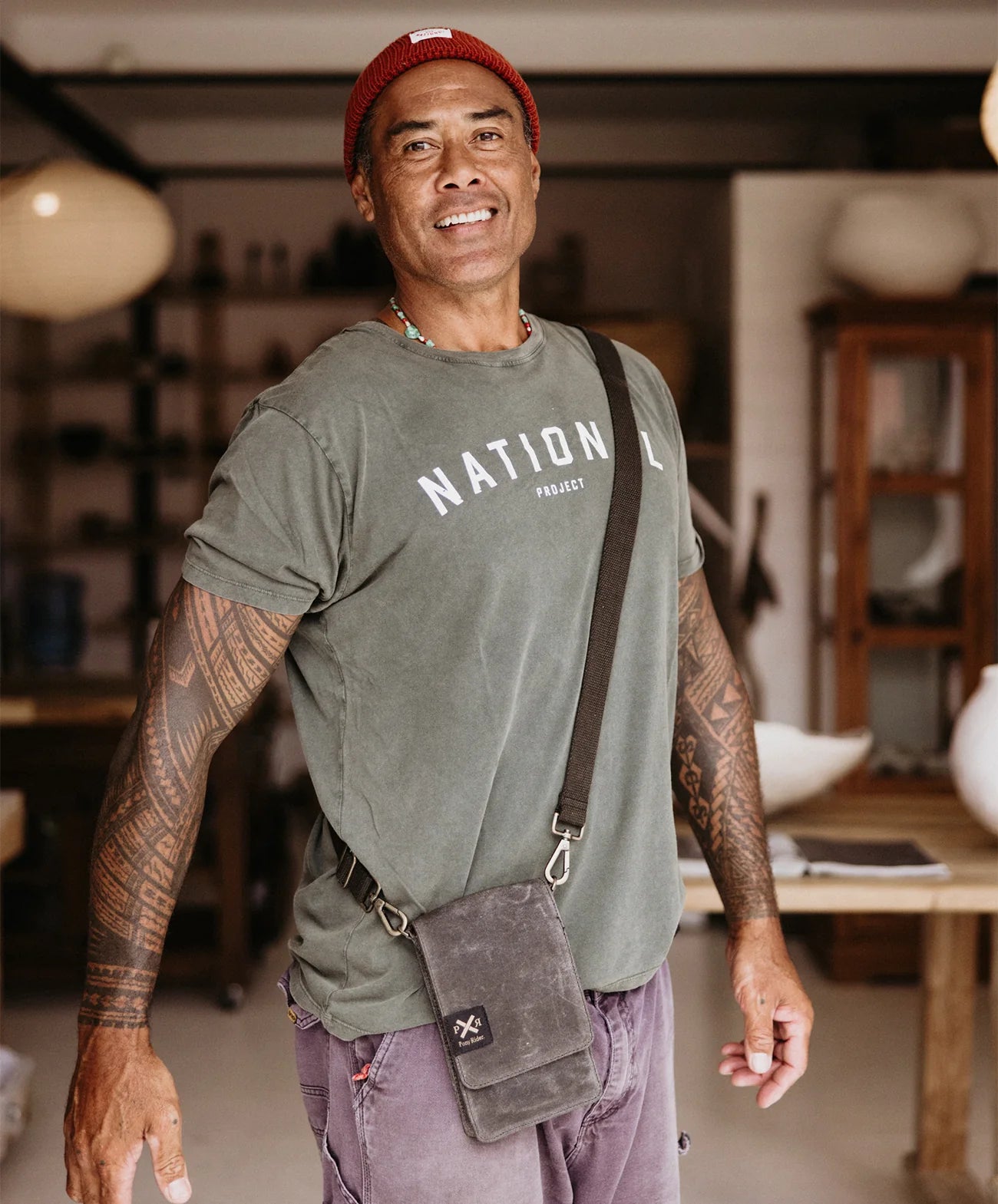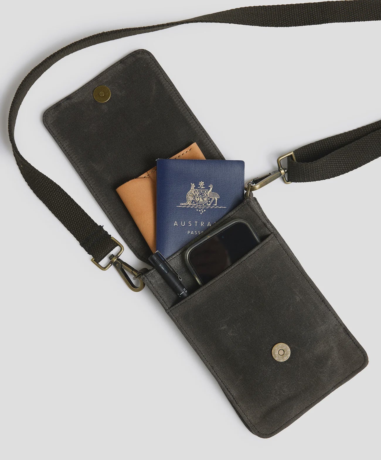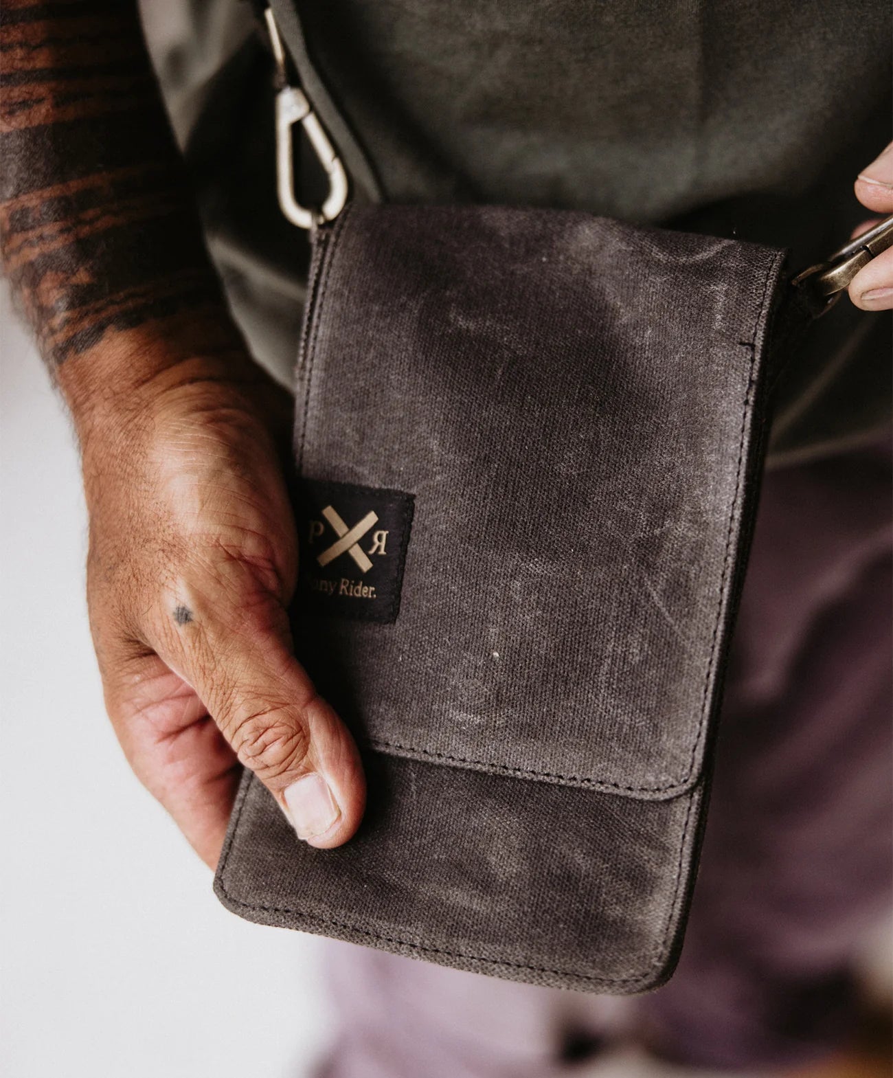 The Slow Road Phone Satchel is part of a sleek, all-black series designed to elevate urban style. Crafted from waxed canvas, it exudes sophistication while offering practicality and durability. Ideal for busy city life, this phone satchel combines minimalist design with functionality, providing a secure and stylish way to carry your phone. The Black Olive hue adds versatility, making it an essential accessory for professionals and creatives alike.