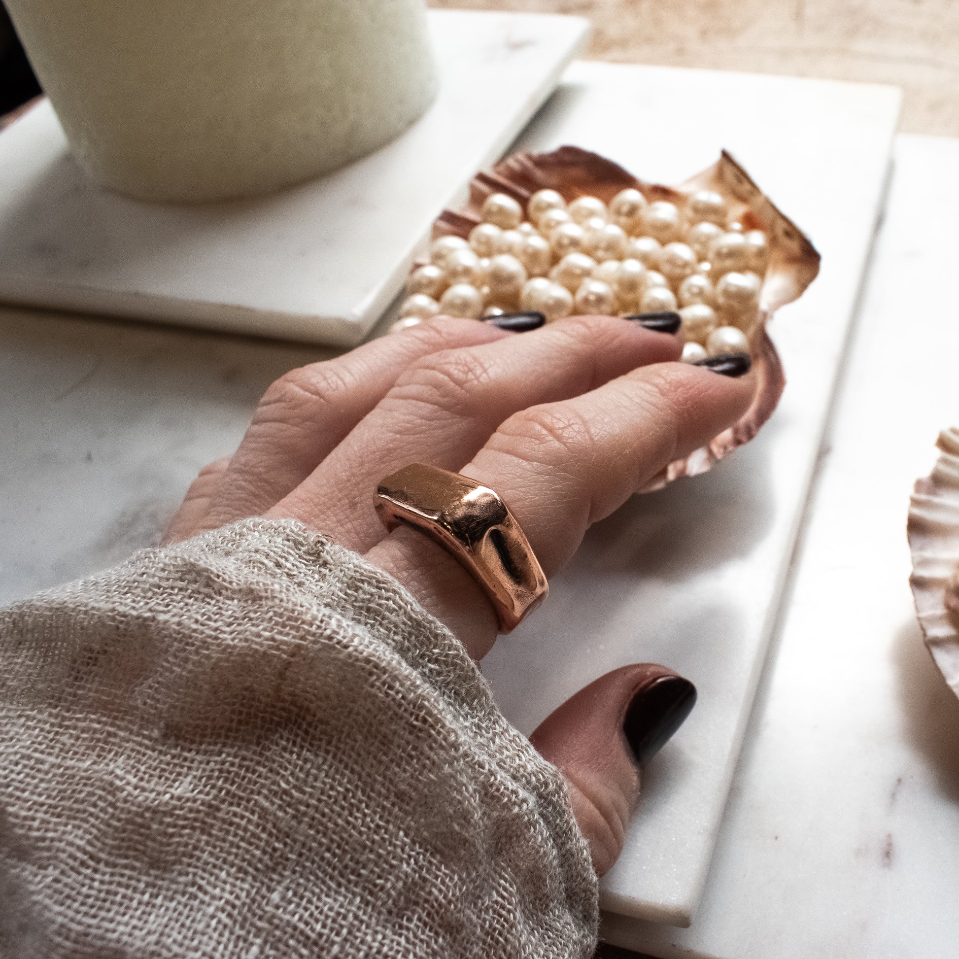 Crafted from high-quality bronze, our rings feature a unique blend of textures and finishes.