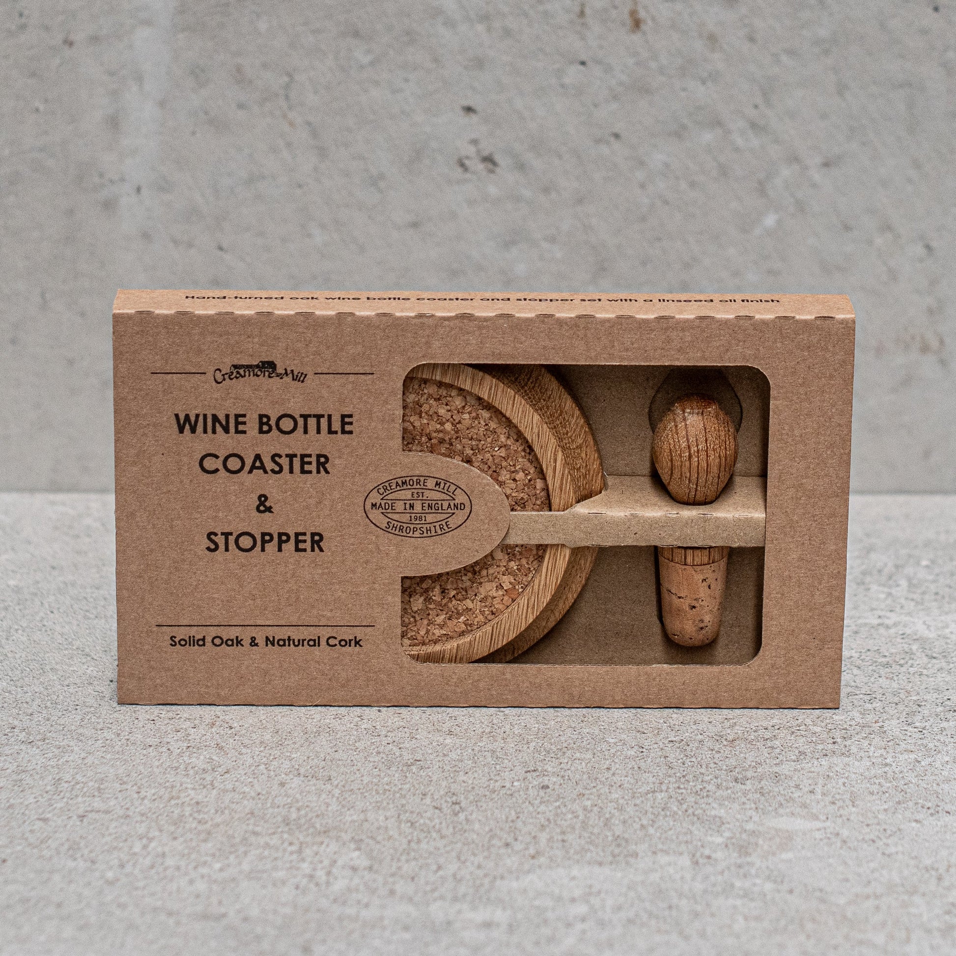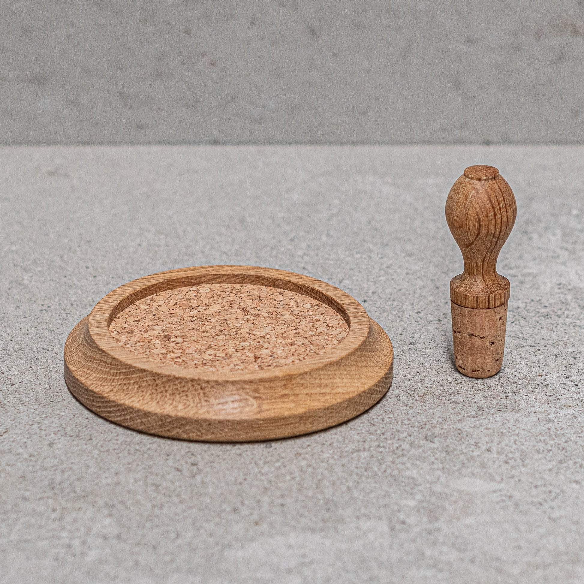 Made of natural cork and oak, this hand-turned coaster proudly cradles your wine bottle and the natural cork stopper keeps your precious wines fresh. A great gift.